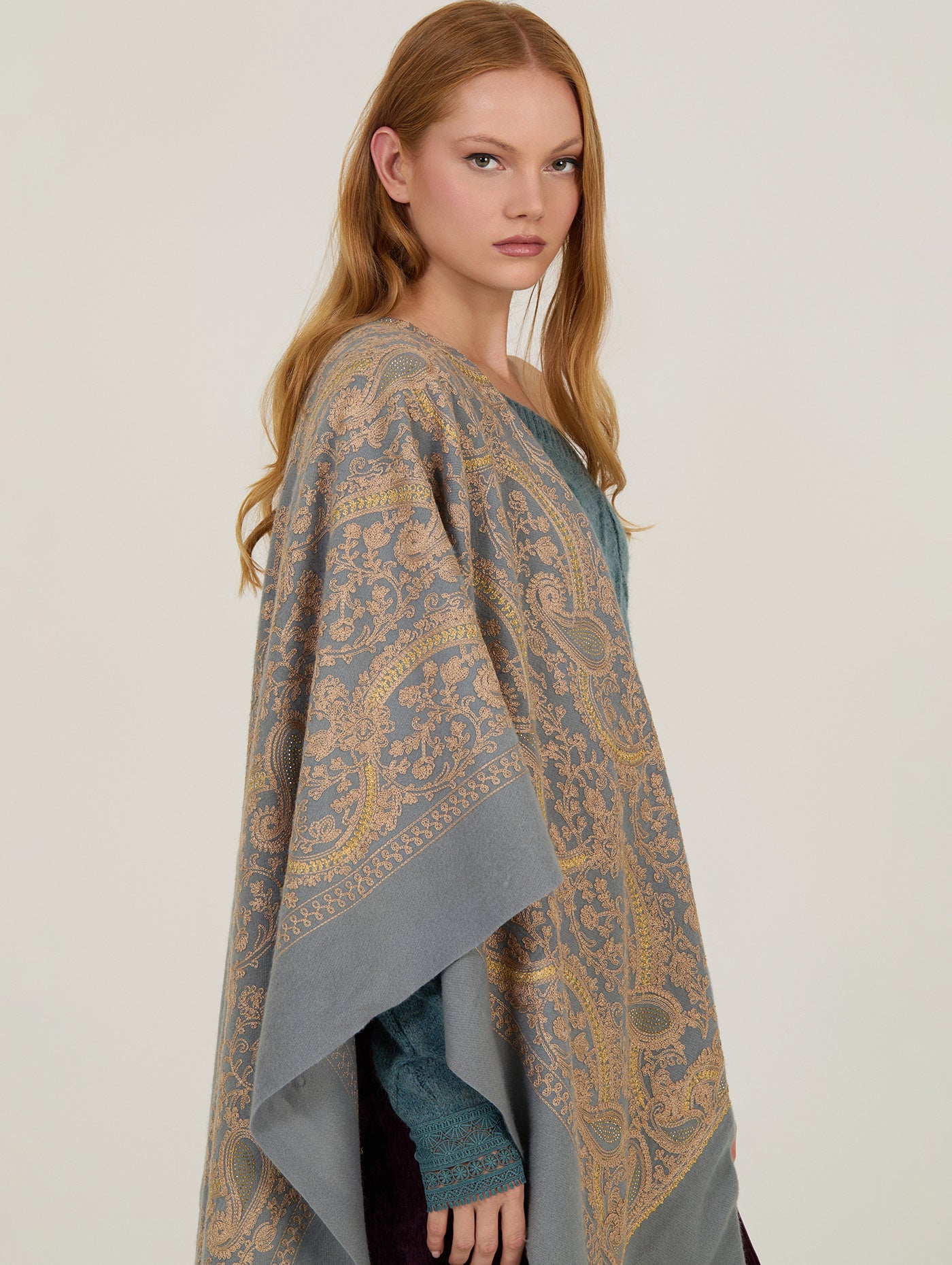 Pañuelo de cashmere con elegante diseño pasley, suave al tacto y perfecto para añadir un toque de sofisticación a cualquier conjunto.