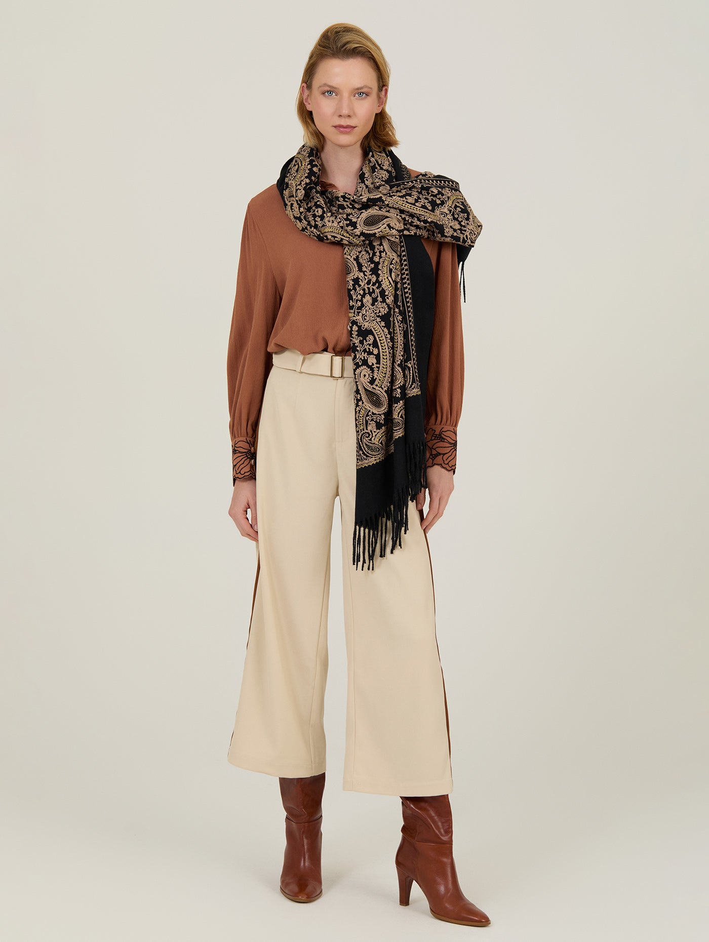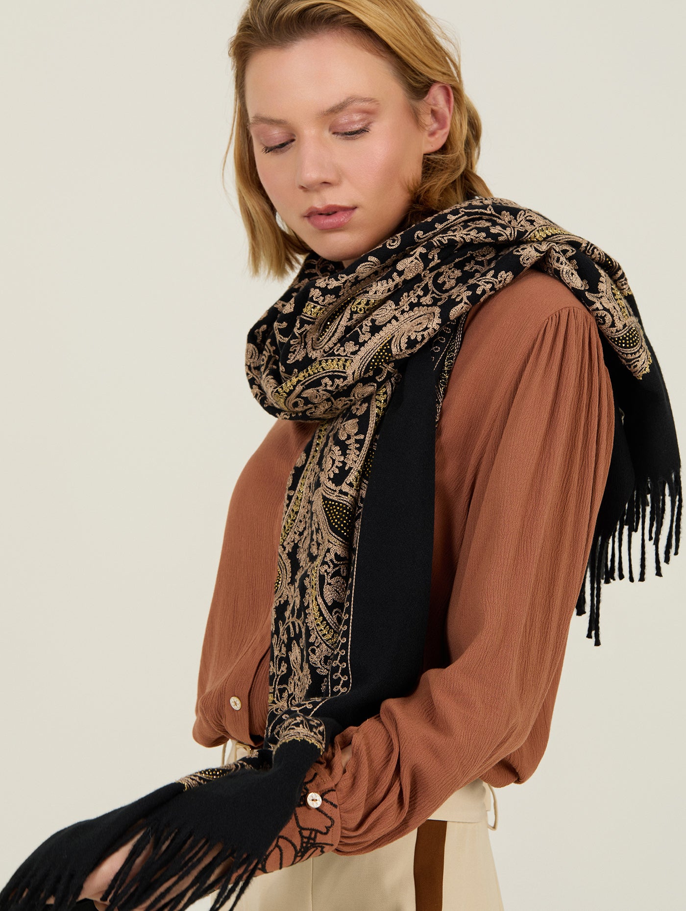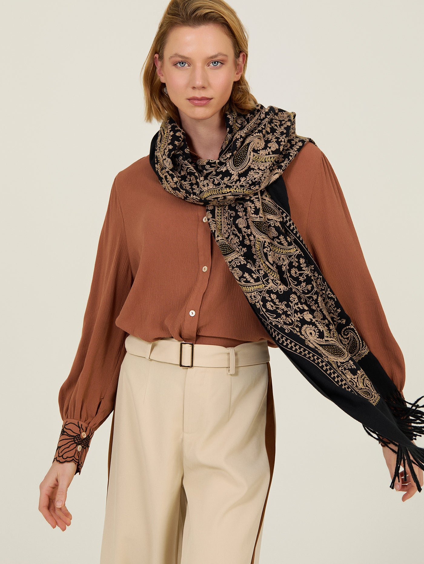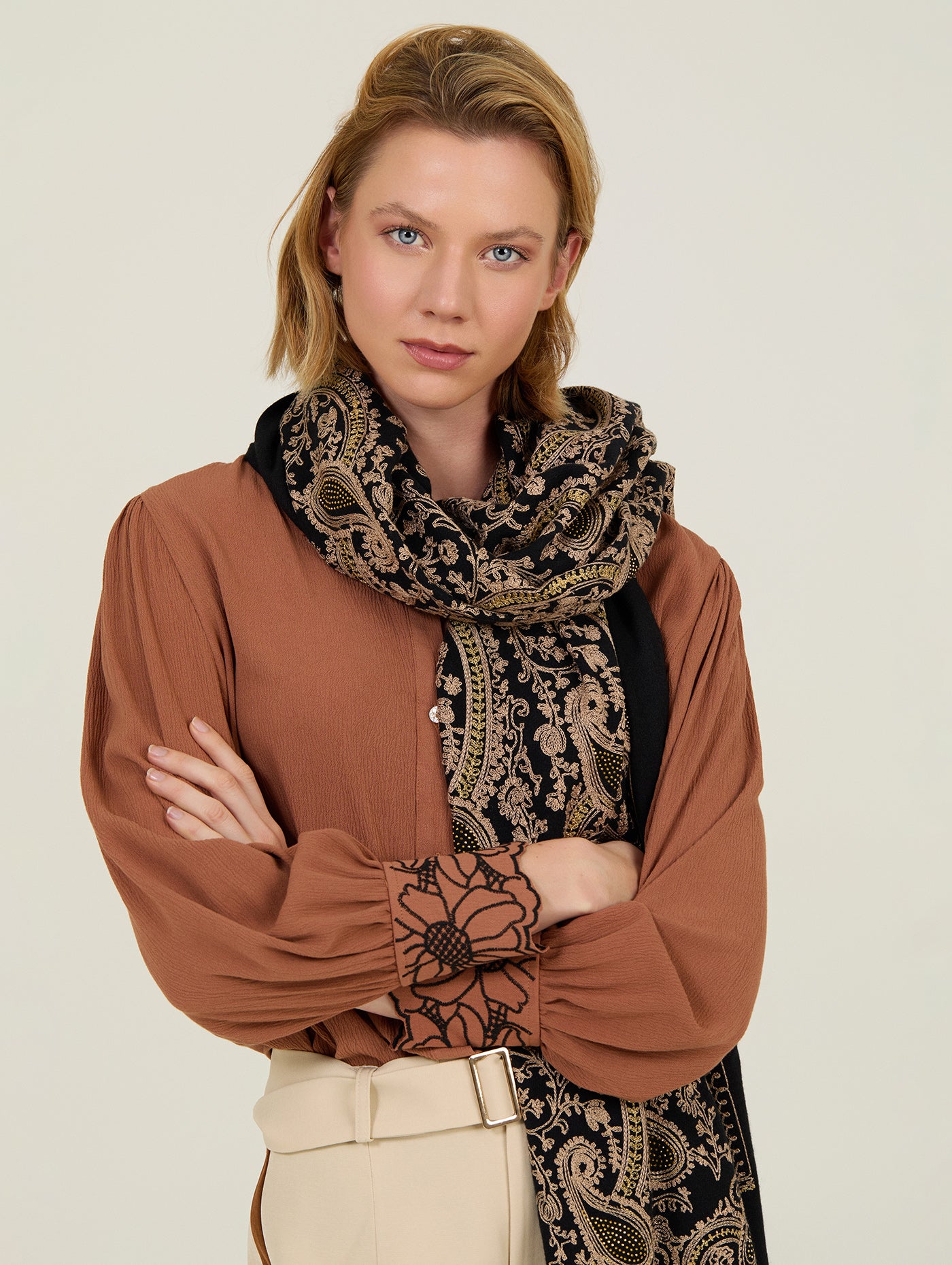 Pañuelo bordado pasley, dan a tu look un toque muy elegante, a un look informal le da una aire de sofisticación y para un look mas arreglado le aporta el toque de elegancia. Esencial en tu armario.